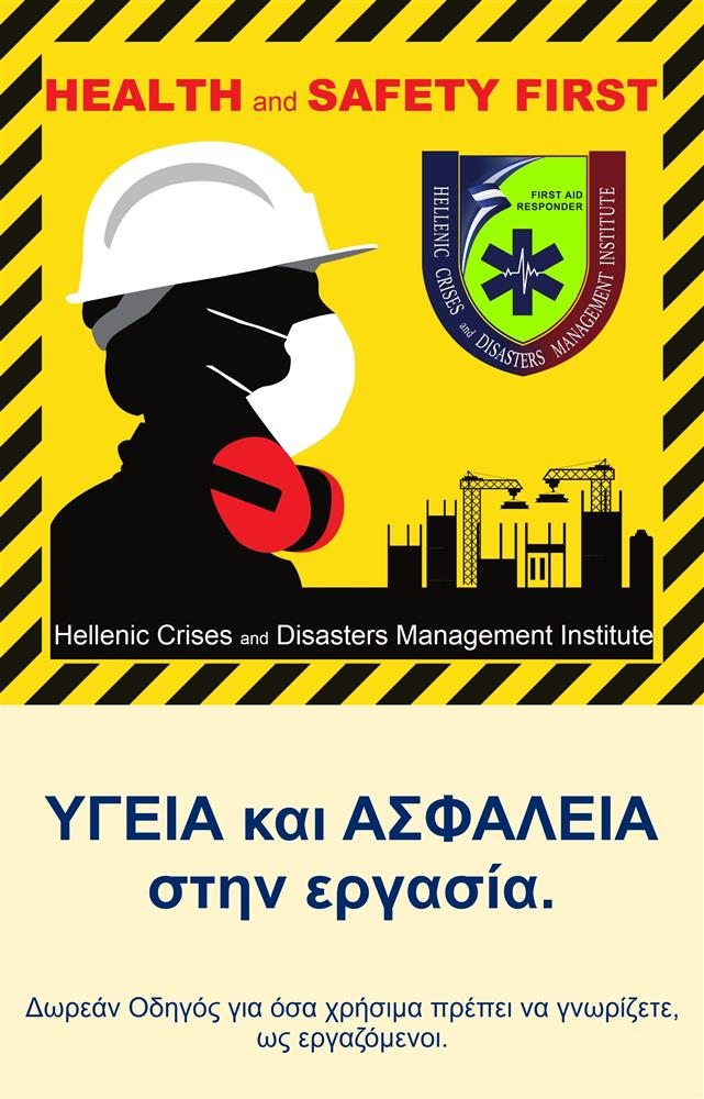 Το Ελληνικό Ινστιτούτο Διαχείρισης Κρίσεων και Καταστροφών, Ιδιωτικός και Ανεξάρτητος Οργανισμός Εμπειρογνωμοσύνης, με αίσθημα ευθύνης, θέτει από σήμερα 20 Οκτωβρίου 2025, στην διάθεση όλων των εργοδοτών και εργαζομένων, αλλά και σε κάθε ενδιαφερόμενο, το νέο βιβλίο των κ.κ. Αναστασίου Γ. Γερασιμάτου και Σπυρίδωνος Μ. Κυριακάκη, με τίτλο : «Υγεία και Ασφάλεια στην εργασία. Δωρεάν Οδηγός για όσα χρήσιμα πρέπει να γνωρίζετε, ως εργαζόμενοι». Καταβλήθηκε προσπάθεια από τους συγγραφείς, ώστε, το πόνημα να γραφεί σε απλή και εύληπτη γλώσσα, για να μπορεί να κατανοηθεί, απ’ όλους. Έχουν αποφευχθεί τα μακροσκελή κείμενα, ενώ παρατίθεται η αναγκαίο για όλους σχετική νομοθεσία, ως συμπλήρωμα εύρεσης πηγών. Το παρόν πόνημα «Υγεία και Ασφάλεια στην εργασία. Δωρεάν Οδηγός για όσα χρήσιμα πρέπει να γνωρίζετε, ως εργαζόμενοι», διευρύνεται / συμπληρώνεται στο περιεχόμενό του, από τα προσφερόμενα σε κάθε ενδιαφερόμενο εργοδότη και εργαζόμενο, προγράμματα επιμόρφωσης του Ε.Ι.ΔΙ.Κ.ΚΑ., ήτοι "Υγεία και Ασφάλεια στην Εργασία", "Πρώτες Βοήθειες στον χώρο εργασίας", "Πυρασφάλεια - Πυροπροστασία στον χώρο εργασίας", "Εταιρική Διαχείριση Κρίσεων", "Εταιρικός Συντονιστής Ασφάλειας", κ.α.